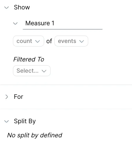 In the first line of the query builder, accept the defaults: count of events.- In the second line of the query builder, accept the default: Filtered to all events.