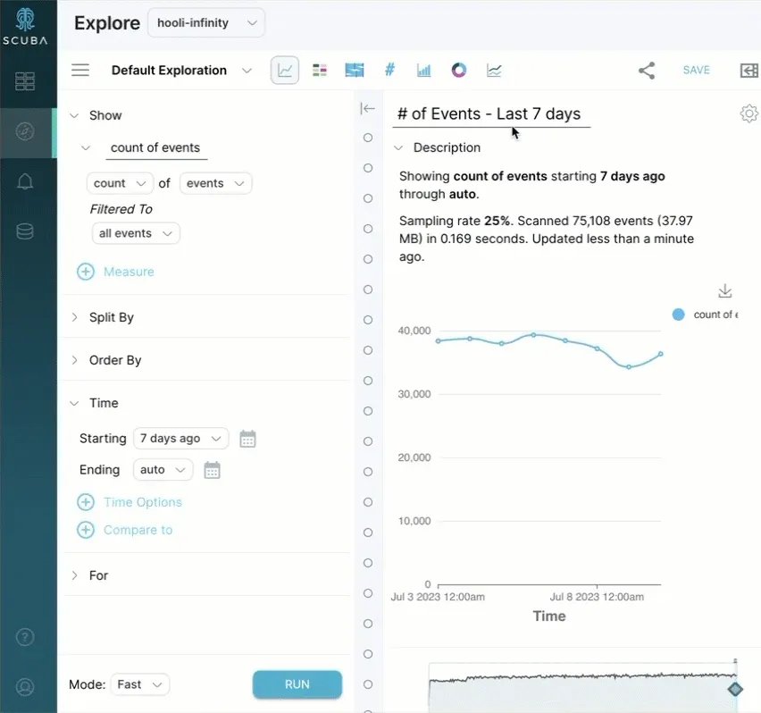 Section titled “Explore”Explore is where you construct queries and analyze results in various formats. You can also modify existing queries to explore the data on a granular level.
